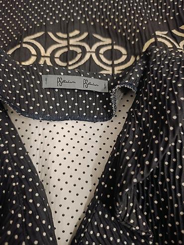 - Detalji: talasasti prelaz između tačkastog i geometrijskog dezena na donjem delu; diskretne faltice oko izreza.