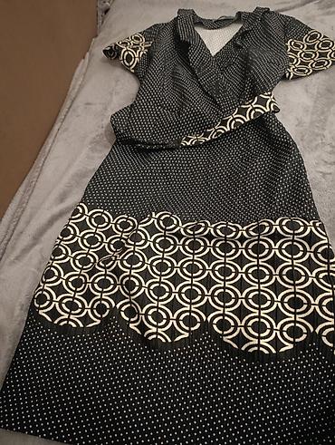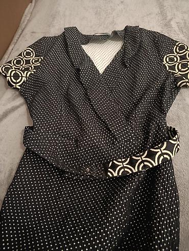 Ženska haljina na preklop, teget‑bela, midi dužine velicina 40 brend