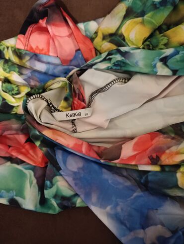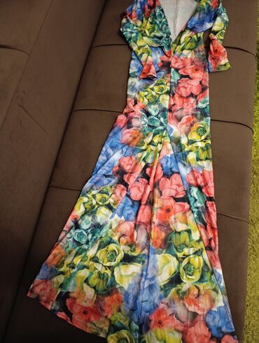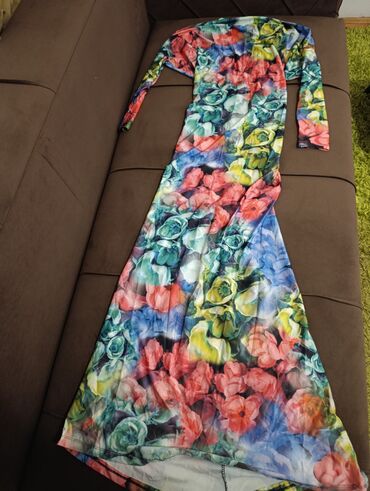 Napomena: tkanina je rastegljiva, pa pristaje različitim konstitucijama. Raskošni print vizuelno izdužuje figuru, a donji deo formira elegantan talasasti pad,prelepa haljina placena preko 100 e, prodajem je jer mi ne odg velicina