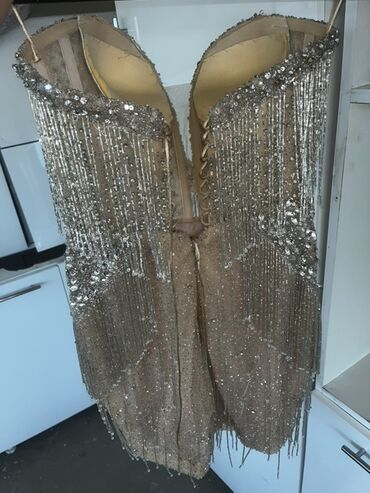 Napomena: haljina je vizuelno veoma efektna i teža zbog velike količine perlica i kristala. Preporučuje se nošenje uz jednostavne aksesoare kako bi haljina došla do izražaja.