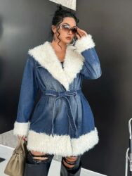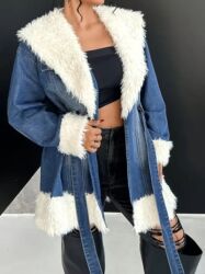 Ženska jakna Rupsapsa u svetlosivoj boji, sa krznenim reverom/okovratnikom i velikim dugmadima. Model je strukiran, sa naborima pri dnu i praktičnim džepovima sa poklopcem. Postavljena je, topla i ...