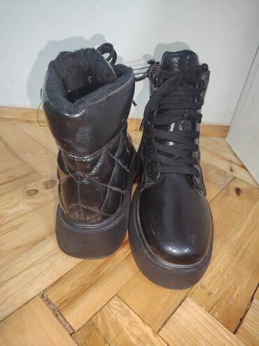Kožne zimske čizme – crne, planinarski stil - Materijal: prirodna koža spolja; mekana postava iznutra za toplinu - Boja: crna - Zatvaranje: kombinacija pertli i remena sa kopčom za dodatnu stabiln...