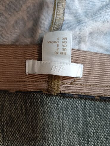 Pesak pantalone – svetlo bež/peščana boja, klasičan kroj. Detalji: - Veličina: M - Dužina: 107 cm - Poluobim struka: 38 cm - Dubina: 34 cm Karakteristike: - Ravan nogavica kroj - 5 džepova (dva n...
