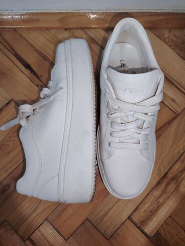 Bele ženske patike Graceland, broj 40. UG 25cm - Model: niske patike sa pertlama, klasičan “sneaker” kroj - Boja i detalji: gornjište u beloj boji; unutrašnjost i obrubi u jarko roze tonu; zadnji ...