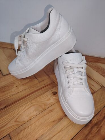 Klasične bele kožne patike sa platformom – jednostavne za uklapanje, udobne i izdržljive.