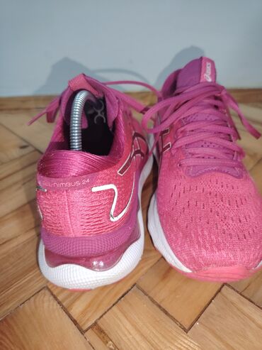 - Boja: roze/ružičasta sa belim detaljima i belim srednjim đonom