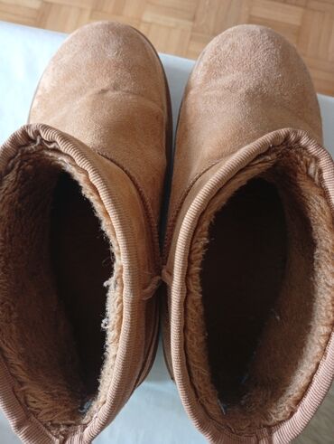 - Materijal: spolja mekana brušena koža (velur izgled), unutra topla plišana postava/veštačko krzno.