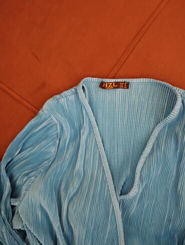 - Kroj: struk lagano elastificiran; gornji deo sa preklopljenim V-izrezom; dugi rukavi