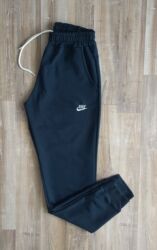 Crne trenerka pantalone (jogger) original sa elastinom strukom i učkurima. - Boja: crna - Materijal: mekana, topla pamučna trikotaža (duks/futer) - Kroj: uske nogavice sa ranflama (rebraste m...