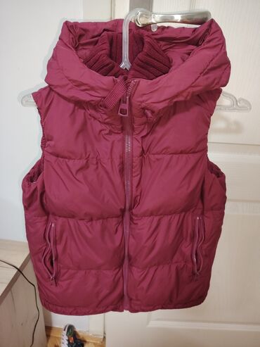 - Model: pufna jakna–prsluk sa visokim kragnom i kapuljačom