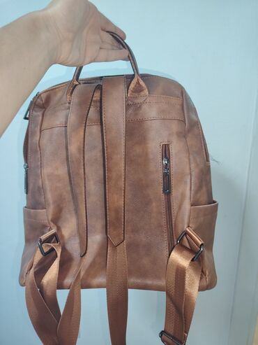 NovoŽenski ruksak od eko-kože u toploj konjak braon boji.