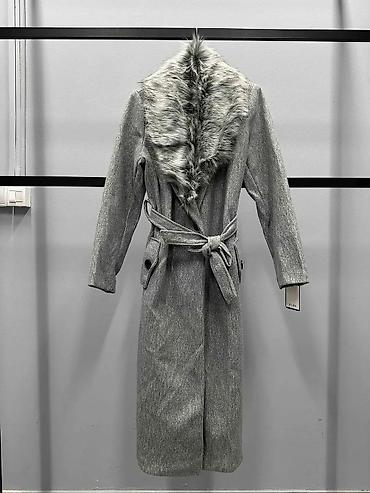 Elegantan ženski kaput sa krznom – sivi - Model: dugi kaput do ispod