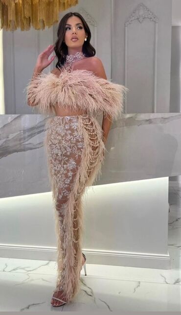U kompletu se dobijaju: perjani top, suknja sa vezom i perjem, kristalna kragna/ogrlica.