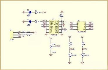 - J1: GND, VCC, SCL, SDA zaglavlje.