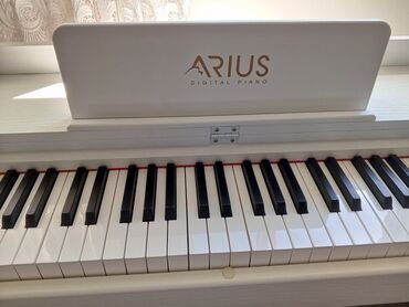 Elegantno drveno kućište u beloj završnoj obradi, stabilna baza, postolje za note sa natpisom ARIUS. Pogodno za učenje, vežbanje i kućne nastupe, sa bogatim setom ritmova i zvukova, mogućnošću snimanja i reprodukcije putem USB-a.
