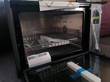 - Unutrašnjost: inox komora sa perforacijama za ravnomerno zračenje; dve žičane police/korpe za istovremeni smeštaj više predmeta.