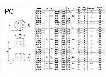 Dimenzije prema tabeli za model PC 04-M5: