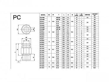 Dimenzije i reference: prema PC seriji prikazanoj u tabeli (model sa navojem M6 i ulazom za cev 6 mm).