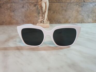 Ružičaste “cat-eye” sunčane naočare - Okvir: uski, izdužen “mačje oko” oblik; sjajna ružičasta plastika - Stakla: tamna, elipsoidna - Nosači: tanki, u tonu okvira - Stil: retro/modni dodatak, idea...