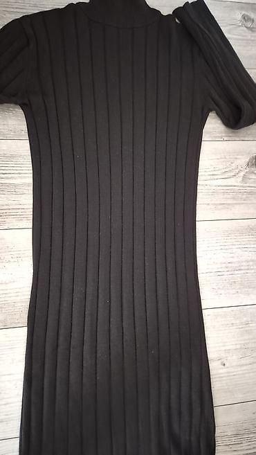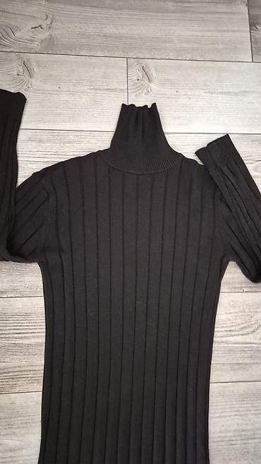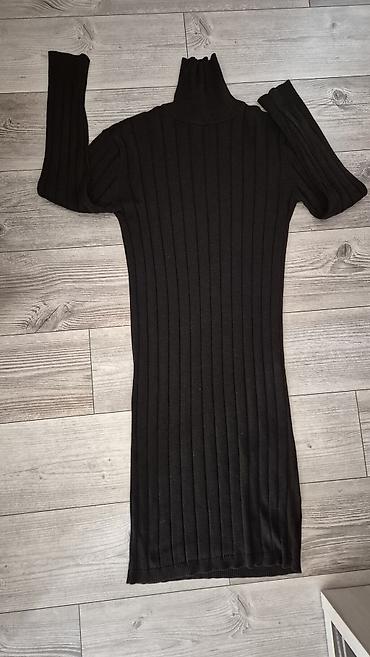 Crna pletena haljina sa rol-kragnom