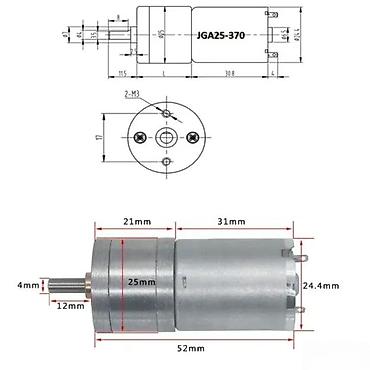 U paketu: jedan DC motor sa metalnim planetarnim reduktorom JGA25-370, prema priloženim dimenzijama na šemi.