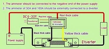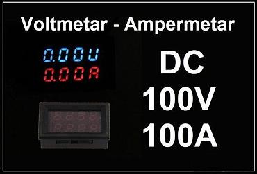 Sadržaj: voltmetar-ampermetar (šant/diverter potreban za 100 A opseg – prema šemi povezivanja na slici).