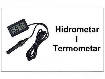 - Kombinovani higrometar i termometar sa eksternom sondom na kablu, za merenje vlažnosti vazduha i temperature na mestu do kojeg display ne mora da bude izložen.