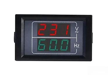 - Dvostruki LED displej: gornji crveni prikaz napona (V~), donji zeleni prikaz frekvencije (Hz)