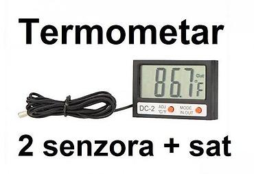 Digitalni termometar DC-2 sa dva senzora + sat - Veliki LCD ekran sa