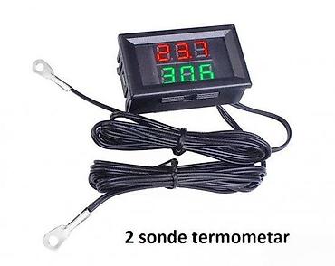 - Komplet sadrži: panelni termometar sa dvobojnim LED displejem + dve temperaturne sonde sa kablovima i ring završecima