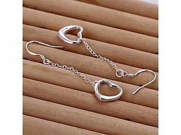 - Dimenzije: dužina naušnice približno kao na slici s referentnim novčićem; srce je diskretne veličine, lančić tanak i profinjen