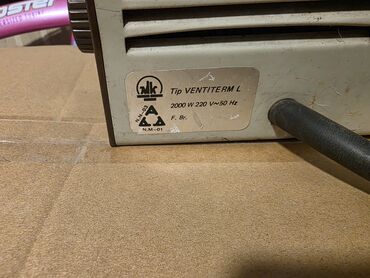 Kompaktan grejni uređaj pogodan za brzo zagrevanje manjih prostorija, radionica ili garaža. Dimenzije niske, kutijaste forme omogućavaju postavljanje na pod ili policu. Oznake i specifikacije jasno vidljive na fabričkoj etiketi.