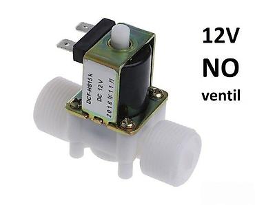 - Tip: NO (normalno otvoren) – protok je otvoren bez napona, zatvara se kada se dovede 12 V