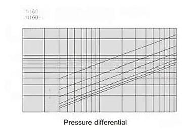 - Dijagram diferencijalnog pritiska prikazan je na slici radi odabira odgovarajućeg tipa prema protoku i pritisku.