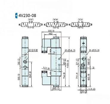 Elektromagnetski pneumatski ventil 4V230-08, tip 5/3 (pet priključaka, tri položaja), navoj G1/4".