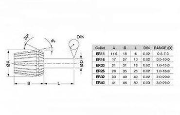 Napomena: koristite uparen sa ER32 navojnom maticom i odgovarajućim držačem; pre upotrebe očistiti stezne površine radi maksimalne tačnosti.