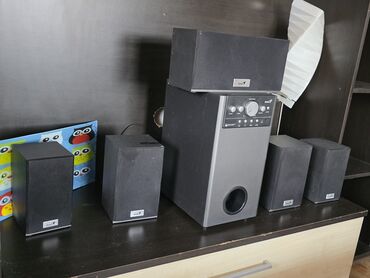 - Komplet od 6 komponenti: subwoofer sa kontrolnim panelom + 5 satelitskih zvučnika (4 surround + 1 centralni).