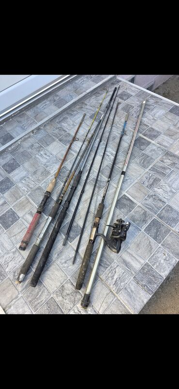- Više ribolovačkih štapova različitih dužina i akcija (teleskopski i segmentni), sa EVA/kork drškama; jedan štap sa montiranom mašinicom sa prednjom kočnicom