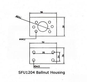 Napomena: orijentaciju i tačne pozicije rupa uskladiti sa priloženim tehničkim crtežom “SFU1204 Ballnut Housing”.