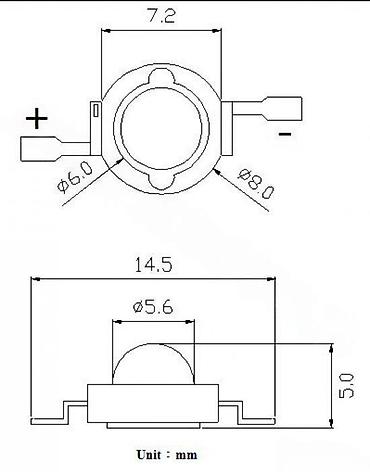 LED dioda velike snage 1W – plavo svetlo Specifikacije: - Snaga: 1 W