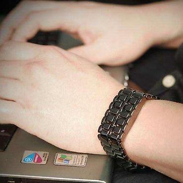 - Prikaz vremena u 24h formatu: crvene ili plave LED cifre se pale kroz segmente same narukvice