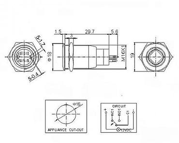 - Prečnik otvora za ugradnju: 16 mm (oznaka: Φ16)