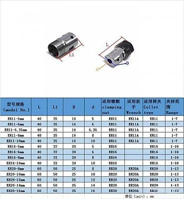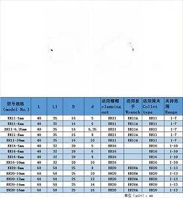 - Podržani opseg stezanja čahura ER11: 1–7 mm (prema tabeli)