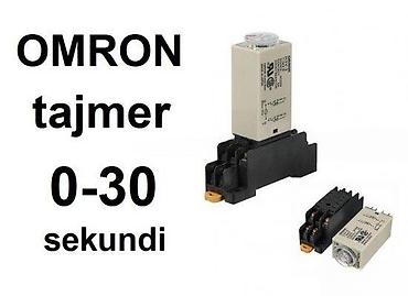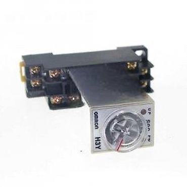 Model: OMRON H3Y serija (mehanički brojčanik napred, cilindrični prozor sa kazaljkom). Opseg tajmiranja: 0–30 s. Tip: vremenski relej. Montaža: preko podnožja sa sarkama/šrafnim priključcima. Indikacija: LED.