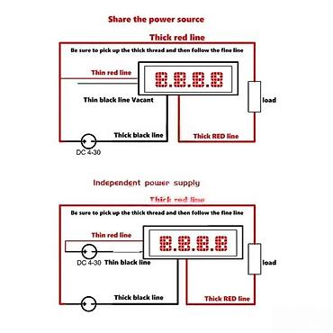 - Debele crvena/crna žica za merenje opterećenja (vod velike struje) prema šemama.