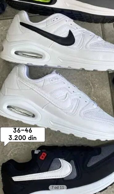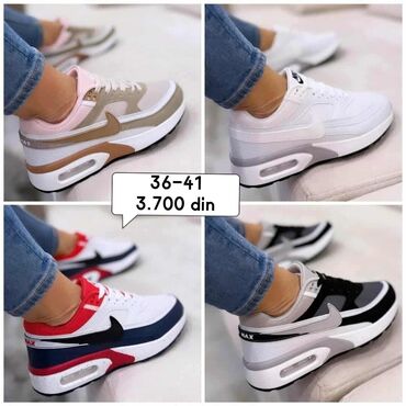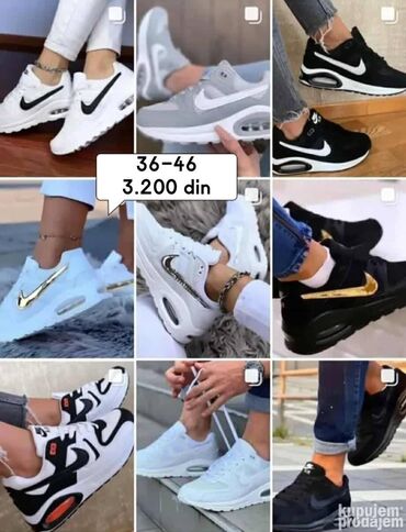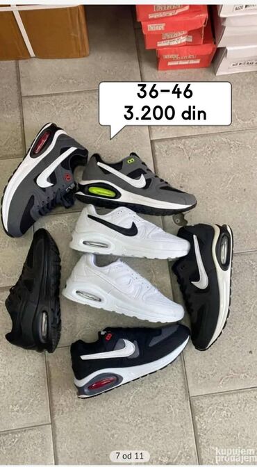 Prelazno vremePatike sportskog dizajna, dostupne u više boja i kombinacija, sa vidljivim vazdušnim đonom za udobnost. Đon je povišen i oblikovan za stabilnost i podršku pri svakodnevnim aktivnostima. Gornjište je prozračno, što doprinosi udobnosti tokom nošenja. Idealne za ležernu upotrebu, šetnju ili lagane sportske aktivnosti. Dolaze u veličinama od 36 do 46, sa varijacijama u ceni zavisno od modela. Ove patike su pogodne za različite stilove oblačenja i pružaju podršku stopalu tokom celog dana. Dostupne u više nijansi, uključujući crnu, belu, sivu, crvenu, bež i plavu boju, pružajući širok izbor za svakog kupca. Diskretni logotipi na bočnim stranama dodaju prepoznatljivost, dok se vazdušni jastuci u đonu brinu za udobnost pri svakom koraku.