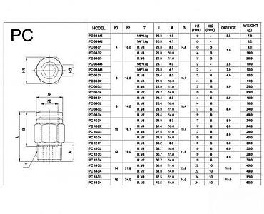 Pneumatski brzi priključak – PC serija - Tip: push-in priključak za
