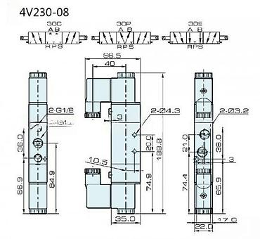 - Standardni raspored portova: P (napajanje), A/B (radni), R/S (izduv)