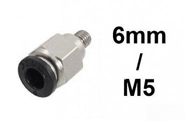 Primena: pneumatske linije na mašinama, razvodnici vazduha, ventili, cilindre i druga automatika gde je potreban konektor 6 mm crevo / M5 navoj.