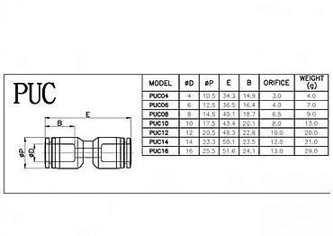 PUC direktna spojnica za pneumatske cevi – 12 mm Opis: - Tip: PUC